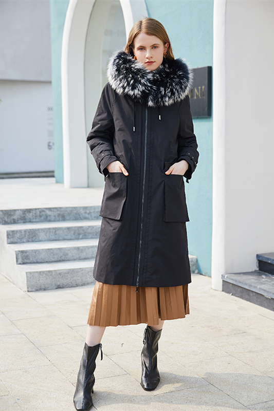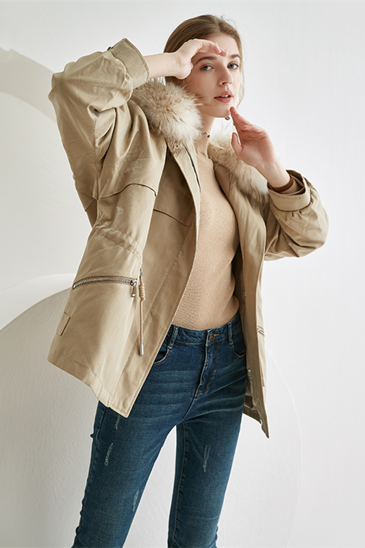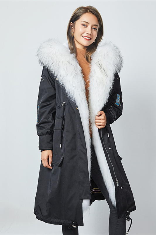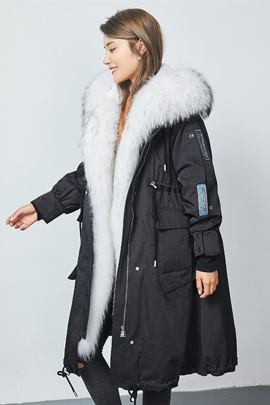 2020年冬季进口貉子毛领连帽休闲皮草外套派克服大衣女